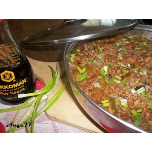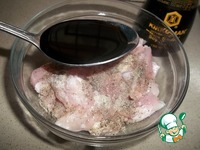 Посолить, поперчить по вкусу, добавить 1 ст. л. соевого соуса. Пока оставить в стороне. |