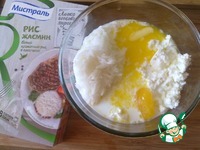 Нагреть молоко, добавить в него мед, сливочное масло, выложить рис, добавить творог, ванилин. |