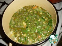 Перекладываем овощи в кастрюлю, добавляем оставшиеся ингредиенты, вливаем бульон, солим, перчим и варим на слабом огне 45 минут |