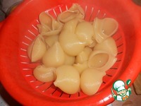 Отварить макароны для фаршировки в подсоленной воде. Откинуть на дуршлаг. |
