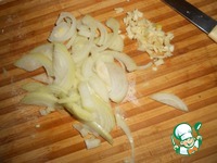 Луковицу очистить и нарезать полукружочками. Чеснок очистить и мелко нарезать. |