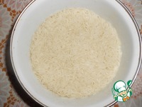Выложить в форму для запекания, долить горячей воды так, чтобы она была выше риса на 2 см. |
