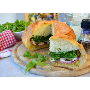 Описание: Пан Банья (фр. pan bagnat) - это знаменитый бутерброд, который делают в Провансе, но особой известностью он пользуется и в Ницце. На окситанском языке - это древний язык коренного населения Прованса - название этого "фарширован ного" сэндвича означает "влажный хлеб"! Собственно, это такой очень большой (И ВКУСНЫЙ!) закрытый бутерброд... На самом деле сложно описать, насколько это вкусно, поэтому просто предлагаю приготовить! ))