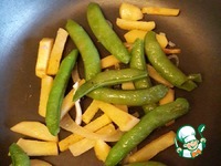 Нагрейте в сковороде масло, нарежьте брусочками репу и обжаривайте её с луком до мягкости. Добавьте лопаточки гороха и обжаривайте еще 5 минут |