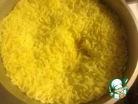 Отдельно в большом количестве воды отварить до готовности рис с солью и 1 чайной ложкой карри. Карри придаст рису красивый цвет и аромат. |