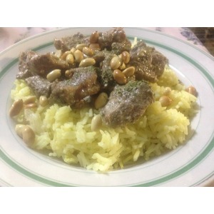 Описание: Предлагаю вашему вниманию иорданский вариант Мансафа -праздничного блюда из баранины (реже телятины, курицы), приготовленной в сметанном соусе или соусе из йогурта. Подается с рисом и орехами. Мансаф гости традиционно едят совместно из больших блюд. Дно блюда выстилается тонким лавашем, на него выкладывается рис, сверху на рис кладут куски мяса или курицы, все это поливается сметанным соусом и посыпается обжаренными кедровыми орешками.
