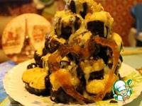 Описание: Крокембуш - традиционный свадебный французский торт. Представляет собой башню из профитролей. Украшение и начинка могут быть на любой вкус. Да, в конкурсе уже участвует шикарный крокембуш, но не предложить свой я не могу. Вот почему. На нашу с мужем годовщину в этом году планировала испечь именно этот торт ещё за долго до конкурса. Выбор пал на французский традиционный торт, т. к. Париж для нас - это намного больше, чем просто "город влюбленных". Итак, предлагаю вашему вниманию свой крокембуш!