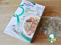 Берём рис в пакетиках Акватика Mix от "Мистраль". Кладём в кипящую воду и варим 30 минут на медленном огне. |