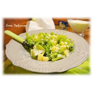Полить салат сливочным соусом. Перед употреблением перемешать. |