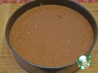 Форму d 26-28 см застелить пекарской бумагой, слегка смазанной маслом. Бортики обсыпать мукой, излишки стряхнуть. Вылить тесто и разровнять. |