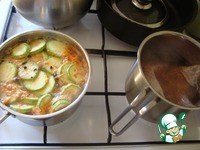 Сверху выкладываем морковь дольками и кабачок. |