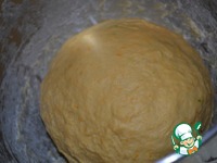 Добавить муку, тыквенное пюре. В конце замеса добавить растопленное сливочное масло. |