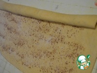 Тесто раскатать ровным пластом, посыпать сахаром и корицей и свернуть в рулет. |