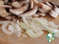 Шампиньоны почистить, обтереть влажной салфеткой и нарезать небольшими пластинами. Лук почистить и нарезать полукольцами. |