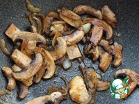 На сковороде разогреть оливковое масло. Добавить лук и обжарить на среднем огне до прозрачности. Добавить нарезанные грибы, соевый соус, тимьян и перец. |