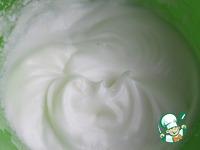 Отделить белки от желтков. Взбить белки с солью до "твердых" пиков. |