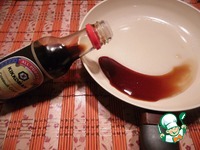 Кунжутное масло, соевый соус ТМ "Kikkoman" и рисовый уксус смешать, хорошо прогреть на сковородке. |