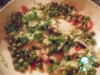 Капусту нашинковать, добавить к горошку, обжарить 2-3 минуты. |