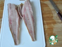 Рыбу чистим, разрезаем пополам вдоль хребта. Кости удаляем. |