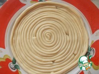 Каждый жгутик мы укладываем на смазанную маслом тарелку, вот таким образом. Снова смазываем тесто маслом. |
