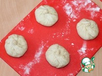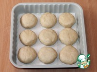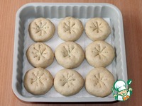 и выложить булочки на противень, застеленный пергаментом, швом вниз. |