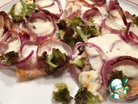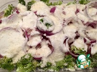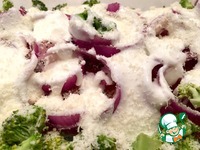 Сверху ( по желанию) можно присыпать пармезаном. Он даст приятный аромат и вкус. |
