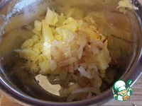 Отварной картофель нарезать и перемешать с обжаренным луком |