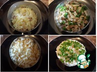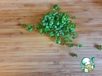 Нарубить зеленый лук и перемешать его с нарезанными грибами. Немного оставить на украшение |
