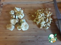 Соленые грибы нарезать. Несколько штучек оставить на украшение Я использовала соленые волнушки - но можно использовать абсолютно любые соленые или маринованные грибы |