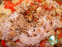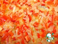 Лук и чеснок натереть на терке и слегка припустить в масле. Добавить мелко нарезанный перец и тушить 2-3 минуты. |
