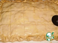 Нанести легкие порционные надрезы и смазать весь пирог молоком (можно яйцом) |