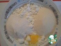 Творог, яйцо, ванилин, манку перемешиваем в одной посуде. |