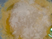 Добавить яйца, разрыхлитель, муку и замесить мягкое тесто. |