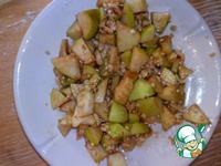 Растопить мед до жидкого состояния и смешать с яблоками, орехами, цедрой лимона, корицей и сахаром. |