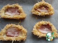 Затем кладем бекон.. если размеры лодочки позволяют, то можно полодить и больше бекона |