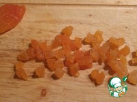 Затем измельчаем грецкие орешки и курагу. Добавляем их в печенье, перемешиваем. |