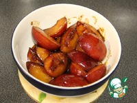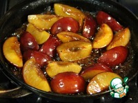 Слива станет мягкой и будет покрыта медом. Перекладываем приготовленную сливу и сок со сковороду в тарелку. |