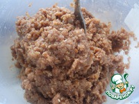 Орехи измельчить. Печенье растолочь в крупу. Смешать орехи, печенье, сахар и разрыхлитель. У яиц отделить белки от желтков. Белки взбить с солью в пену. Аккуратно смешать белки с печеньем. |