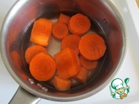 Используя погружной блендер делаем из моркови пюре. Если в кастрюльке осталось немного воды, мы её не выливаем, делаем пюре вместе с ней. |