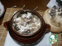 Сверху кладем сметану и на нее грибы порезанные кубиками. Накрываем горшочки крышечками и ставим в духовку при 180"С на 40 мин. |