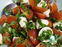 Описание: В классический итальянский салат с моцареллой и помидорами я добавила новый ингредиент - грибочки, получилось другое вкусное блюдо. Такой салат лучше подавать теплым.