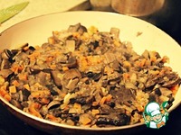 Затем соединяем пассерованные овощи и грибы и продолжаем тушить минут 15, немного добавив воды. Солим. |