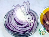 Куриное филе нарезала брусочками и положила в миску. Залила красным сладким виноградным вином без добавления приправ и специй. Поставила в холодильник на ночь. |