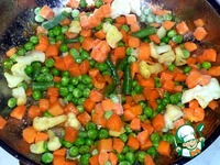 Добавила нарезанный болгарский перец. Посолила и обжарила на масле до готовности. В готовые овощи положила давленный чеснок. |
