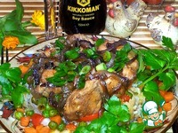 К этому блюду подала любимые овощи, зелень, соевый соус и сладкое виноградное вино. Приятного аппетита! |