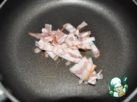Бекон режем тонкими полосками и обжариваем пару минут на сковороде. |