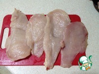 Филе куриное тщательно вымыть и порезать как на отбивные. |