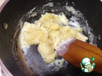 Пришло время соуса бешамель. Для этого в кастрюльке растапливаем масло и всыпаем муку. Быстро перемешиваем до однородного состояния ( кстати эта смесь называется - "Ру"). |