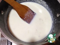 Вливаем тоненькой струйкой молоко и постоянно помешиваем пока масса не загустеет до консистенции сметаны. Солим, приправляем мускатным орехом и пробуем на вкус. |