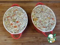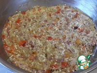 Нарезанный мелко лук и натертую морковь спассеруйте на растительном масле. Отварите пшено в подсоленной воде. Нарежьте мелко болгарский перец. Натрите плавленый сыр |